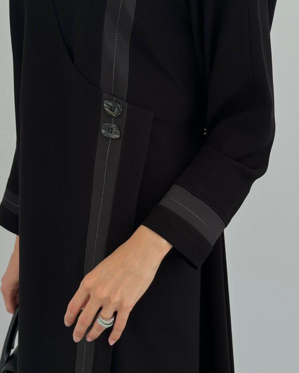 45.00 .د.بعباية صُممت من قماش فاخر جدًا ../ تم الإعتماد على جودة القماش الفخم والفنشنق فقط مع شغل يدوي بسيط في الاكمام